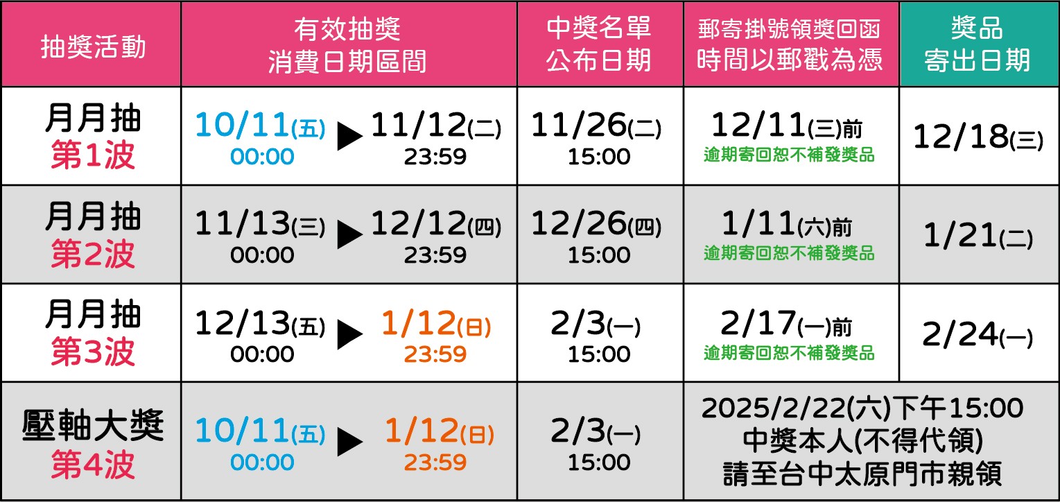 | 月月抽 第 ➃ 波 壓軸大獎 中獎名單 (2025/2/3公布得獎名單) |