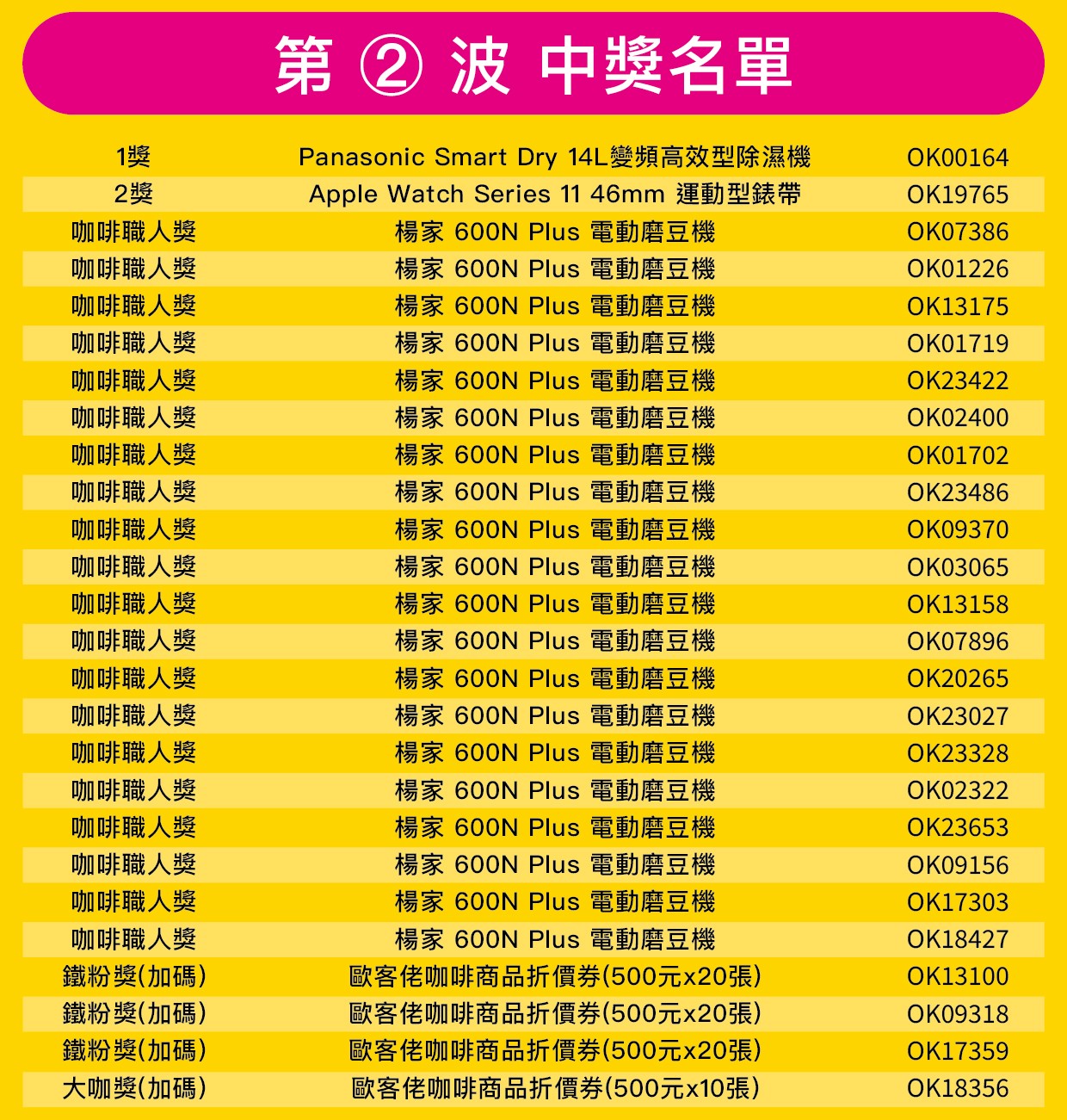 2025 歐客佬16週年慶【中獎名單】查詢